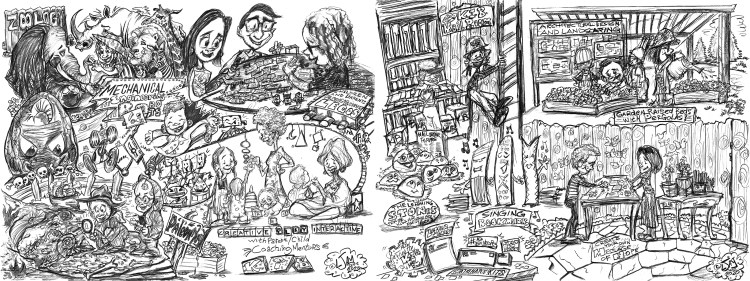 Over the past years, these collected sketches/artworks have come to represent my private art commissions and my pro bono gift artworks for two wonderful business/charitable organizations I’ve had the fun pleasure to work with…